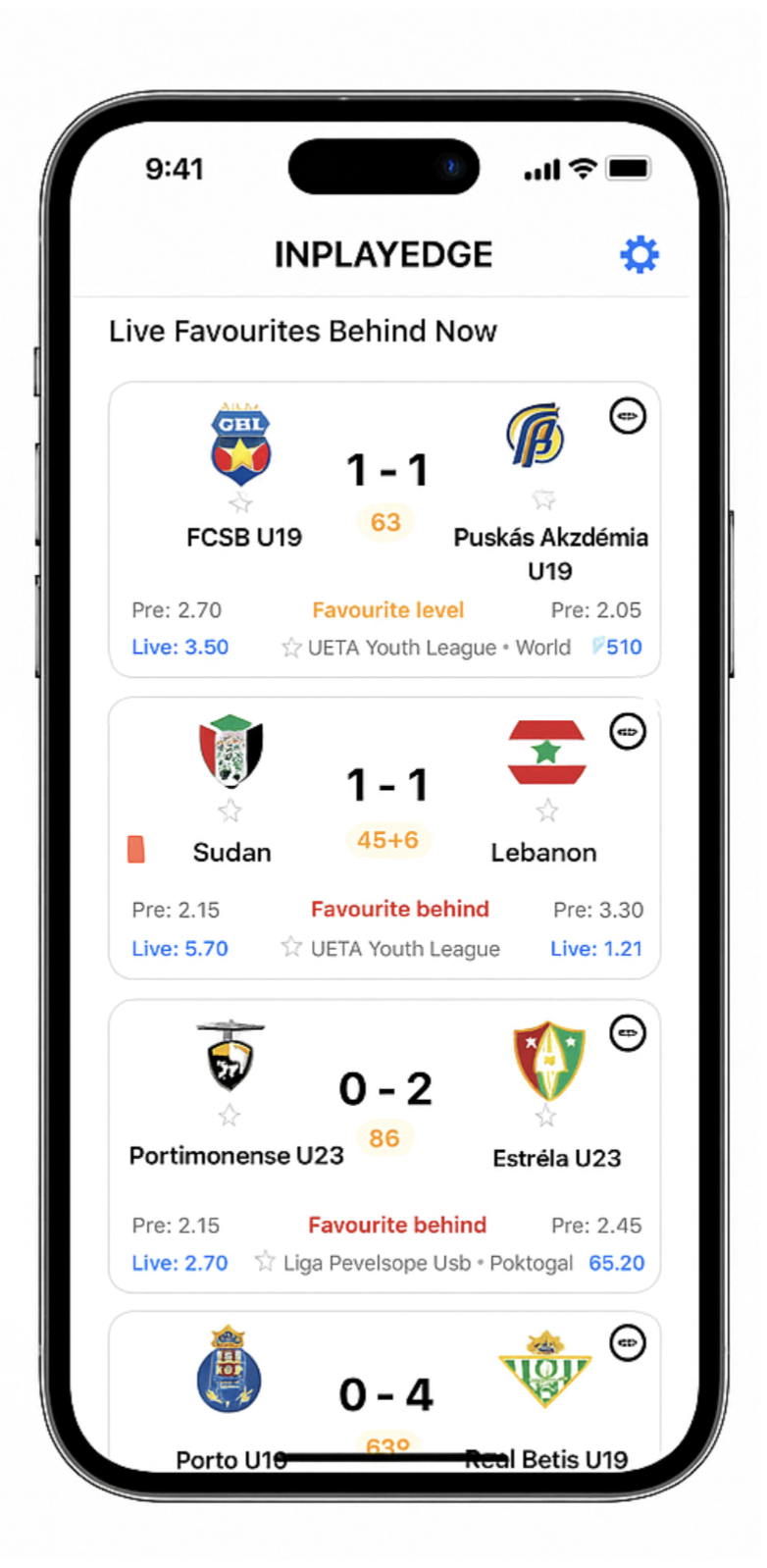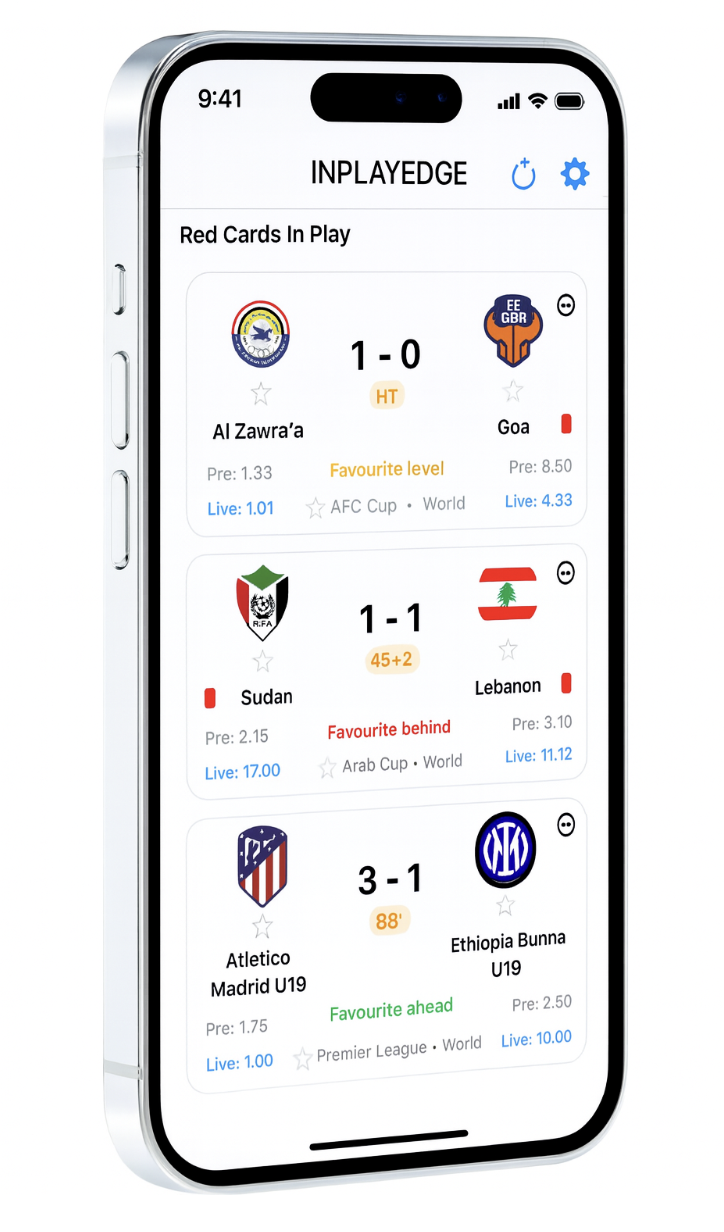 Receive instant notifications the moment a favourite goes behind in any match worldwide. Stay updated with every goal, plus full visibility of pre-match odds and live odds as the game unfolds.